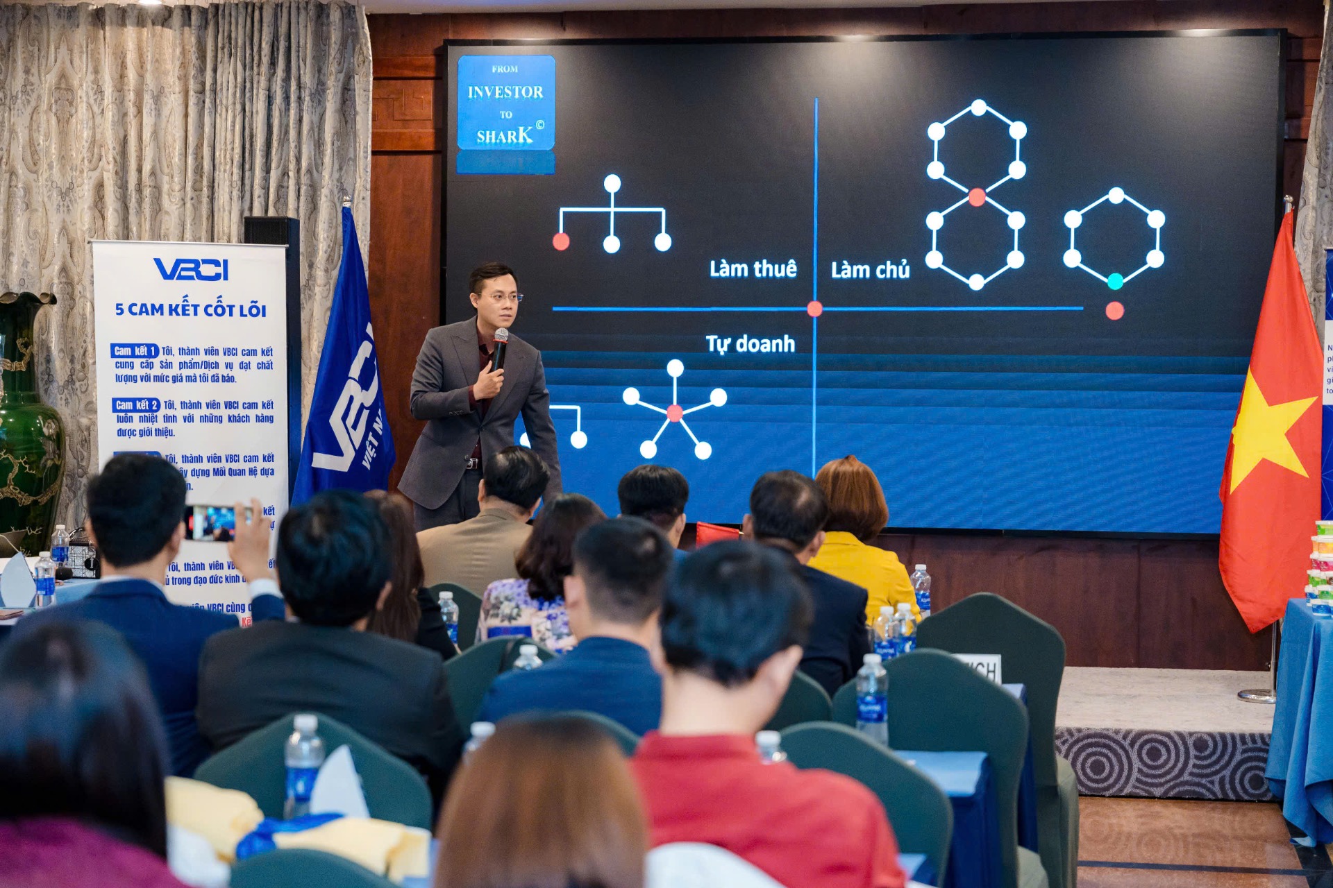 Khóa học “From Investor to Shark” được ông xây dựng dựa trên toàn bộ kinh nghiệm thực chiến của mình trong suốt nhiều năm công tác tại thị trường tiền tệ và thị trường vốn, cũng như quá trình cố vấn chiến lược cho các tập đoàn đầu ngành tại Việt Nam và kinh nghiệm đầu tư thực tế vào các công ty khởi nghiệp.